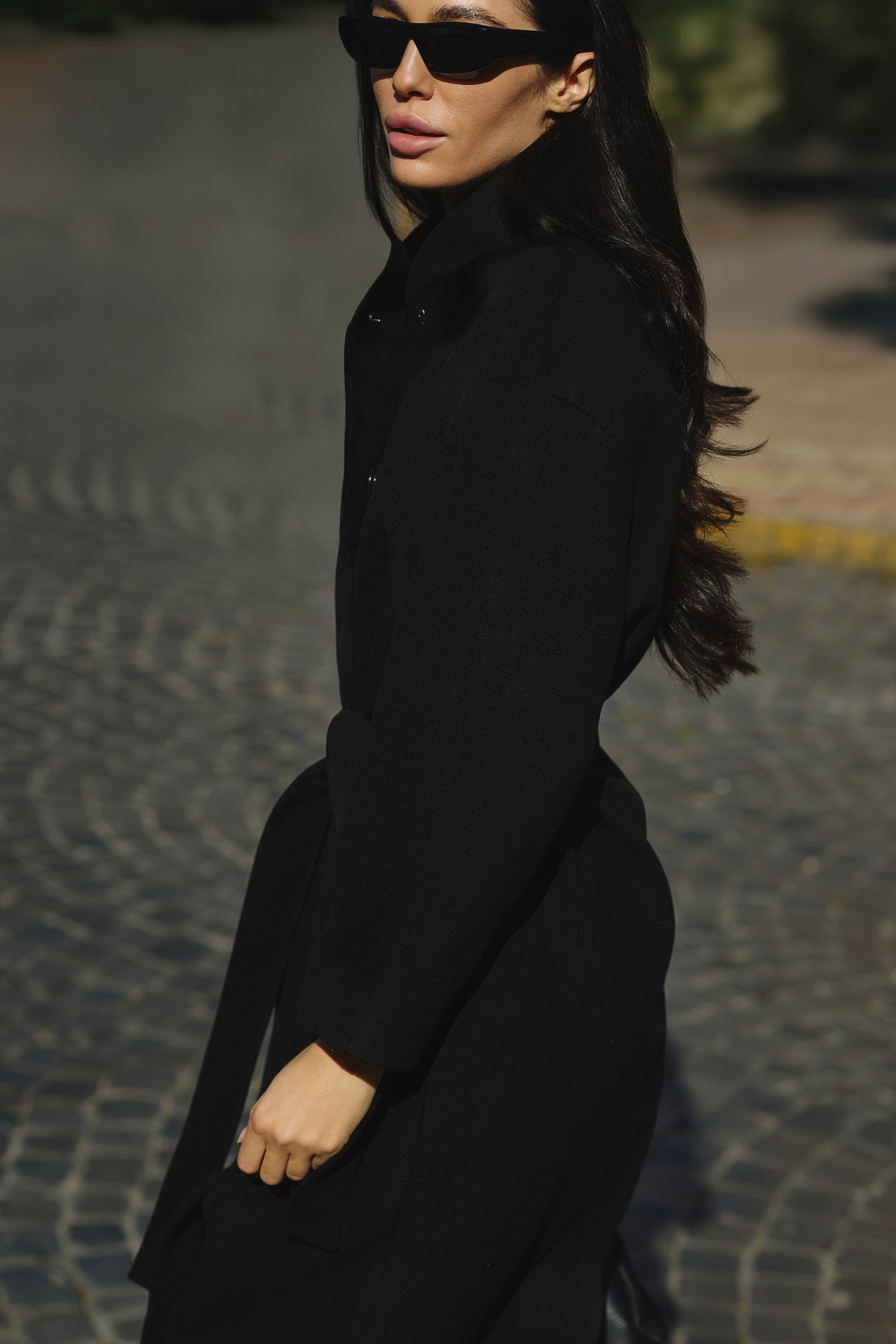 Black coat BAZHANA - when restraint sounds louder than a scream.